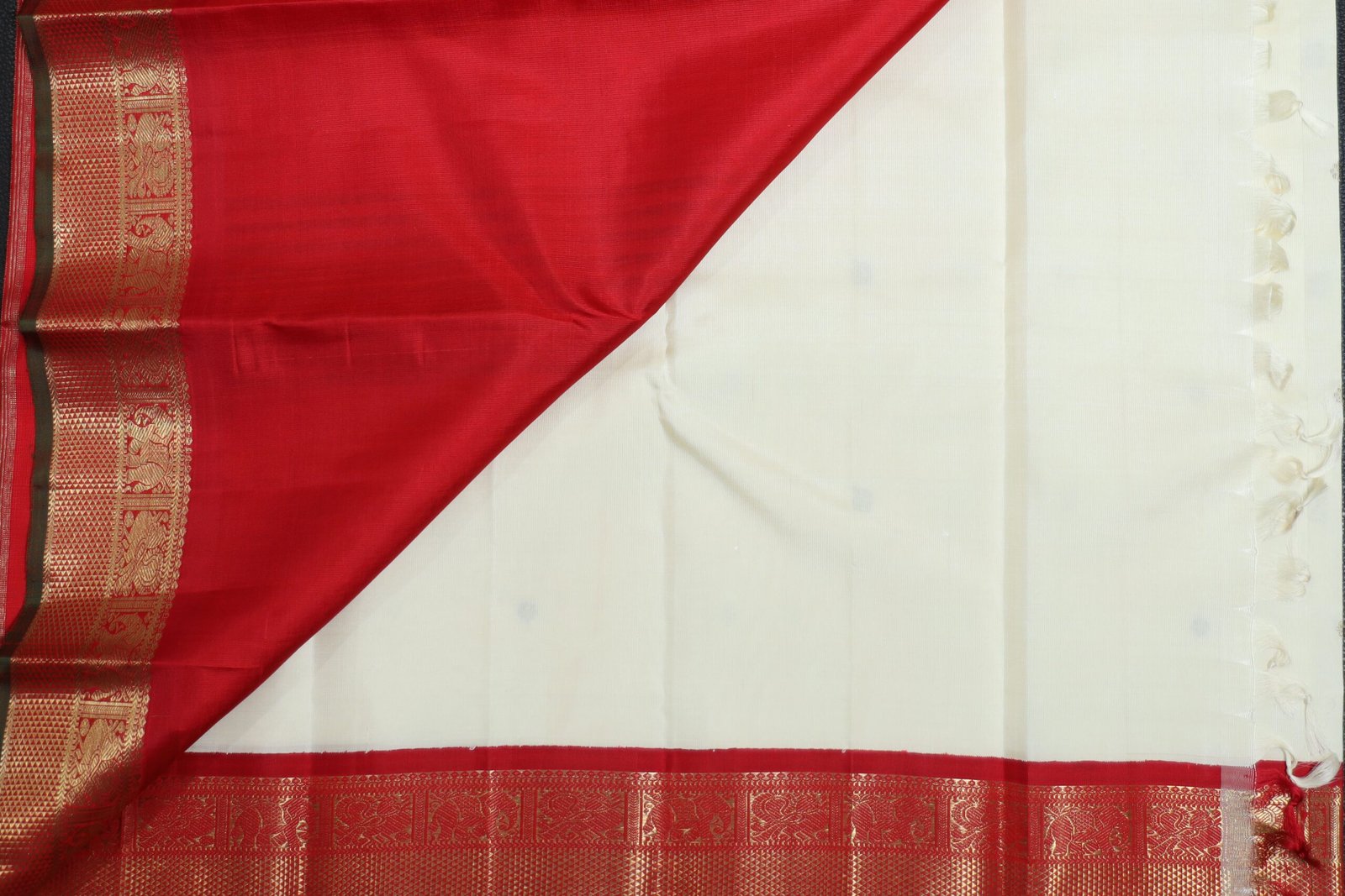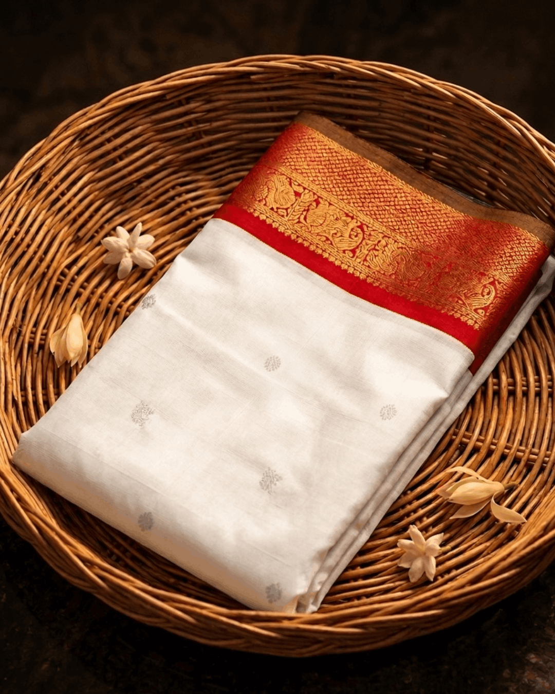 Off-White Kanchipuram Silk Saree – Ganga Jamuna Border with Zari Butta
